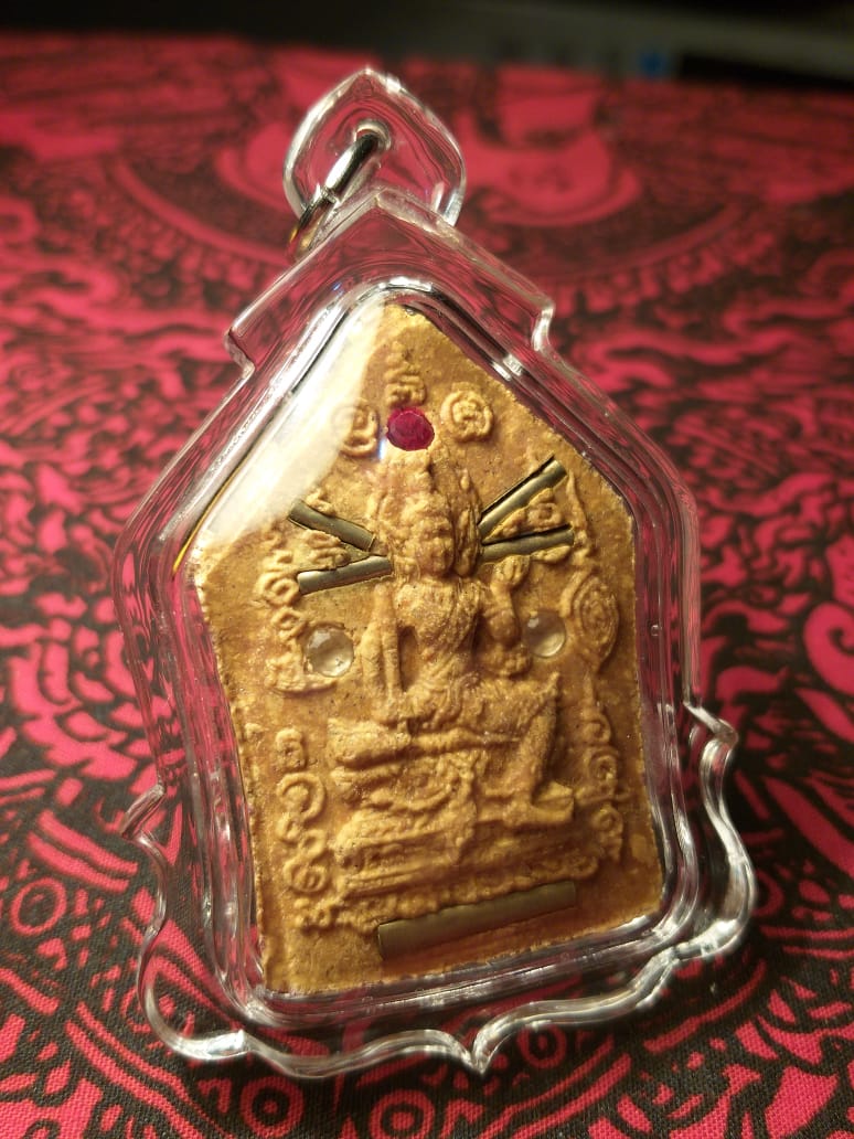 Brahma diapit oleh 5 mantra Takrut yang disisipkan, 1 Takrut Hua Jai Paetch Payatorn, dan 4 Takrut Ngern Hua Jai Paya Pan Hlak