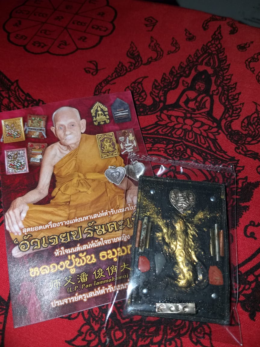 material : powder mahasaneh, powder petphayatron,batu permata, 6 takrut metta ( terbuat dari silver,kuningan, tembaga), inkhoo, bola2 pelor ( hasil peleburan dari berbagai macam rajah dan patung2 kuno)